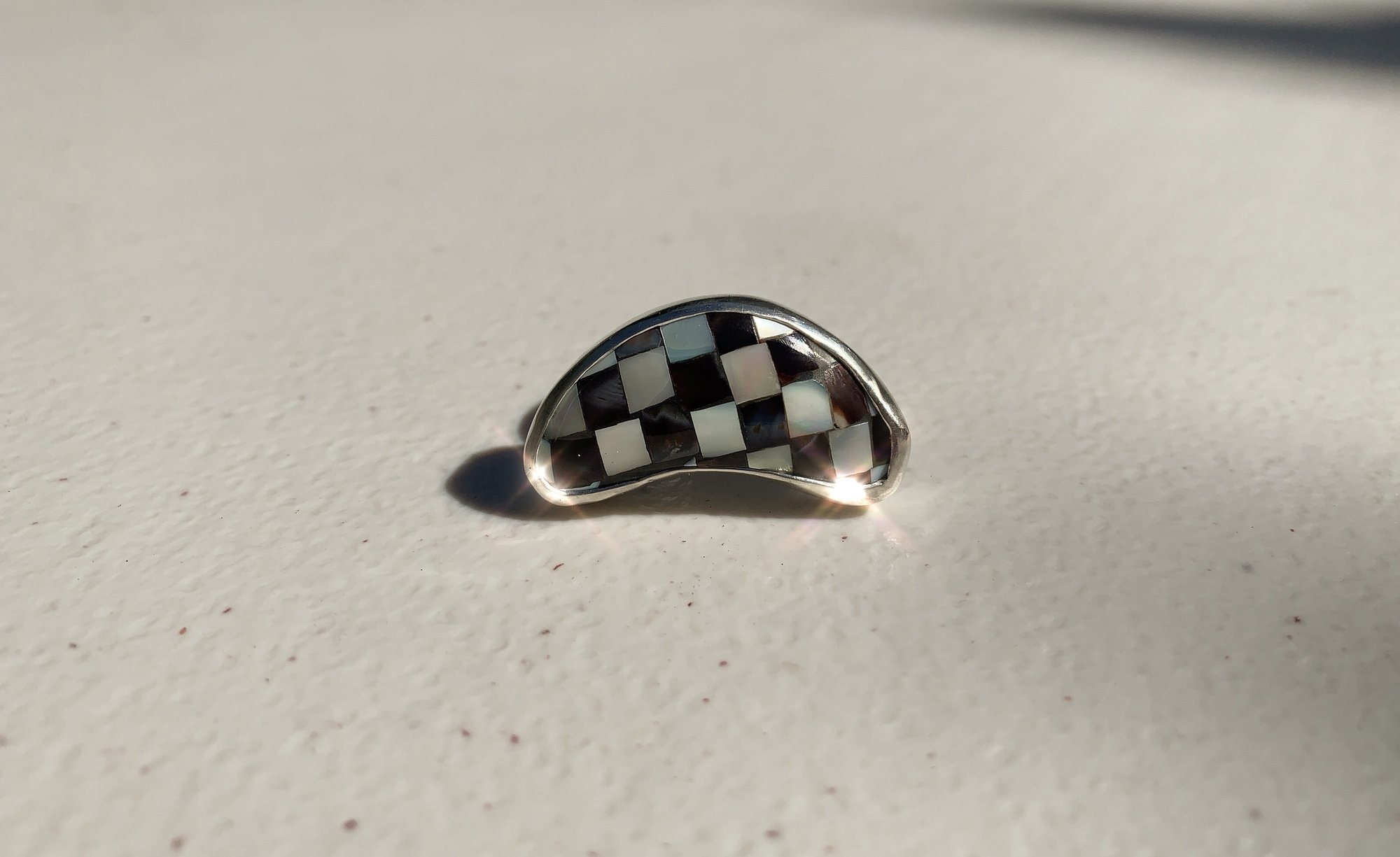 Mother of pearl and shell set in sterling silver, double band. Made to order, please specify size in checkout notes.