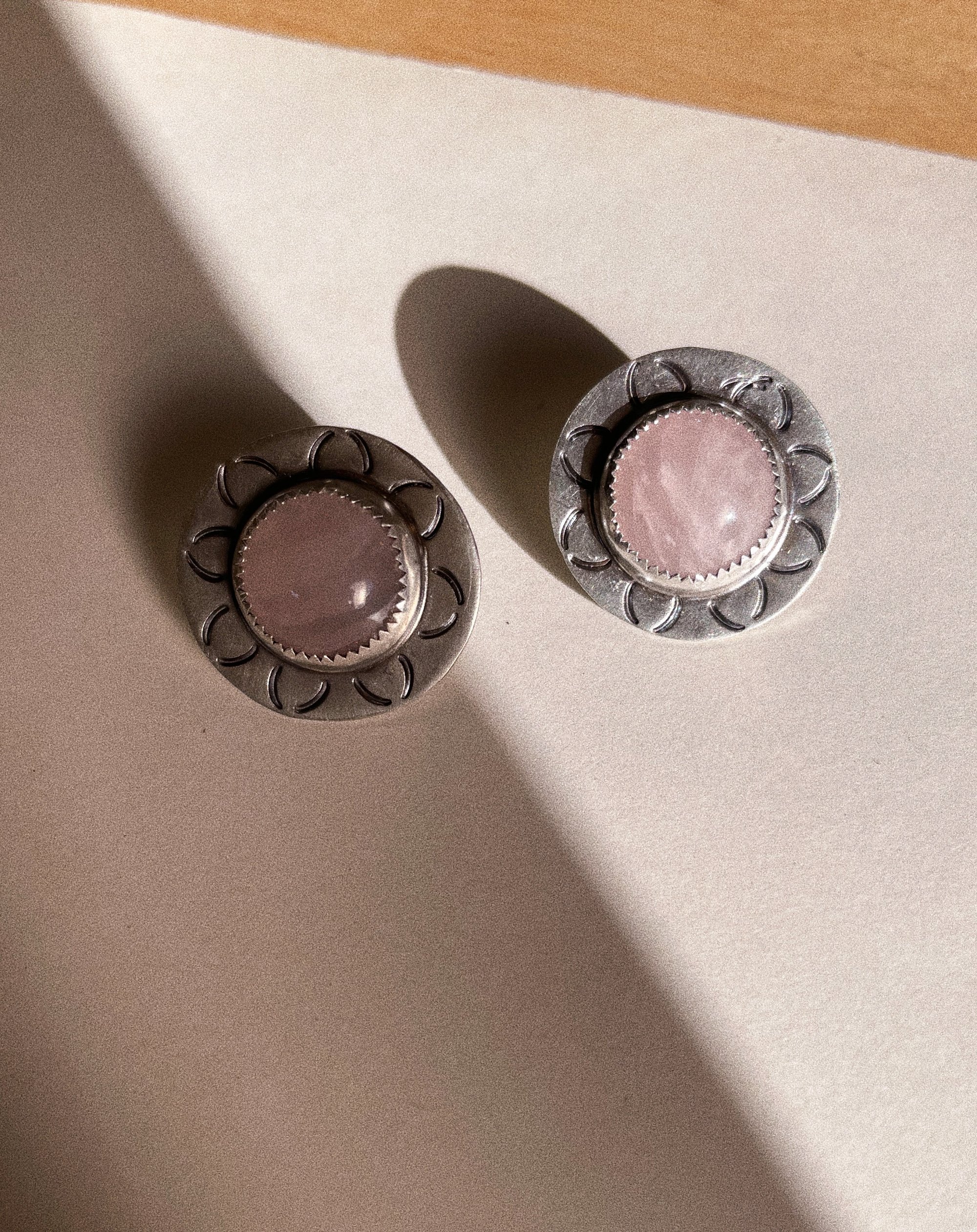 Two perfect pieces of soft pink rose quartz set in sterling silver.