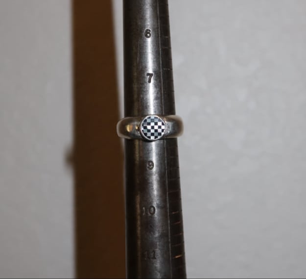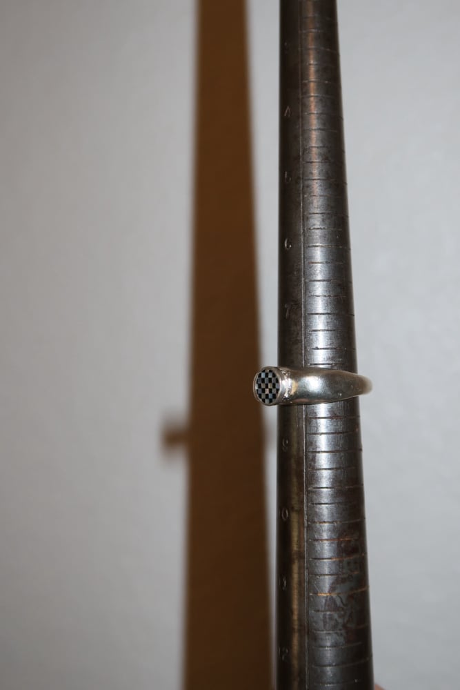 Sterling silver floie signet with a onyx and mother of pearl stone. Size 8.