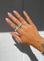 A beautiful celadon colored jade set in a wide sterling silver band. Size 8/8.25 but given the band's width, will comfortably fit a size 7.5 finger.