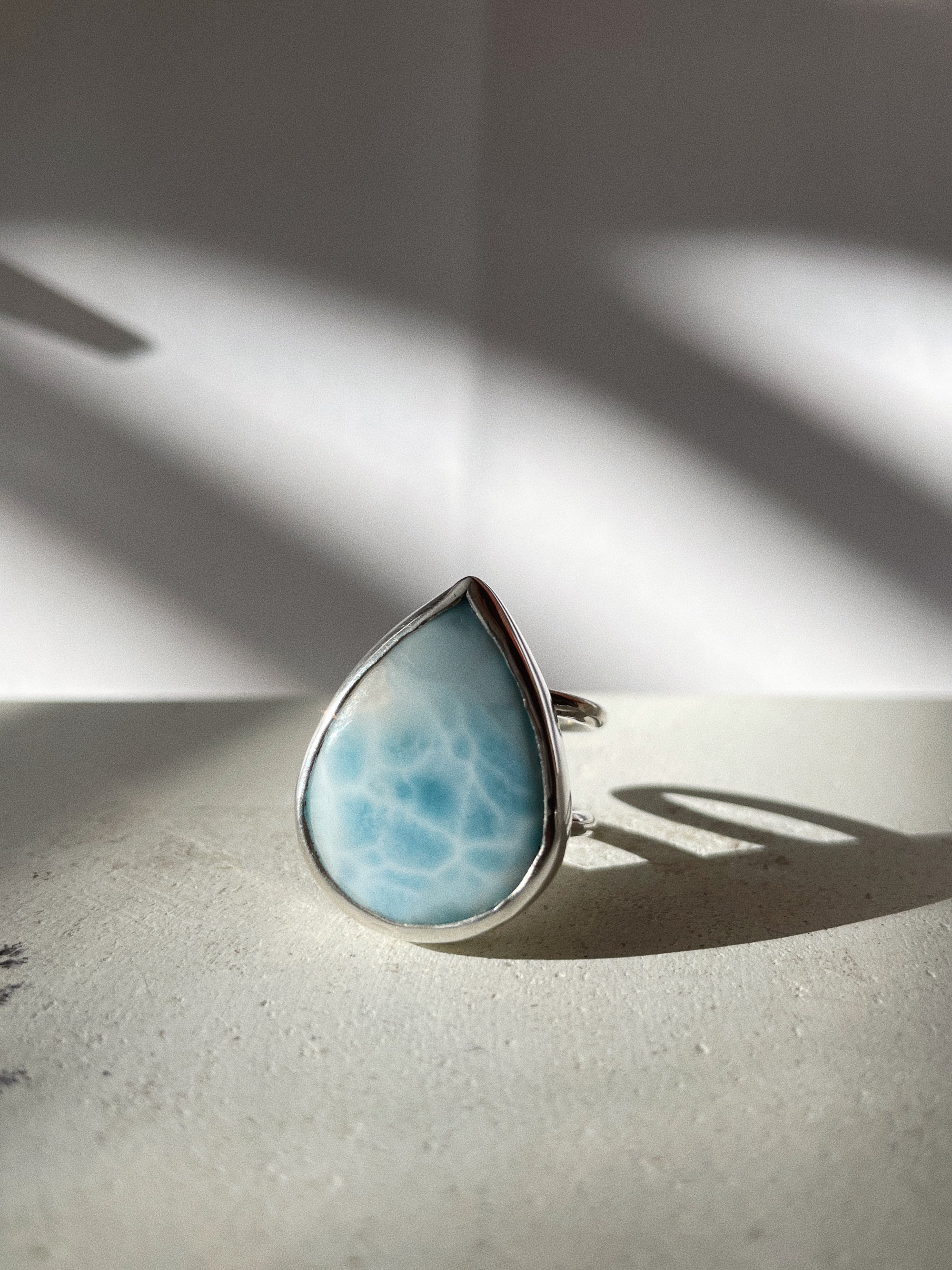 Larimar, oh larimar. There is much to say about larimar. If you’re not familiar with the magic of larimar, give it a quick google search. This beautiful stone looks like a tiny image of the clearest blue waters.