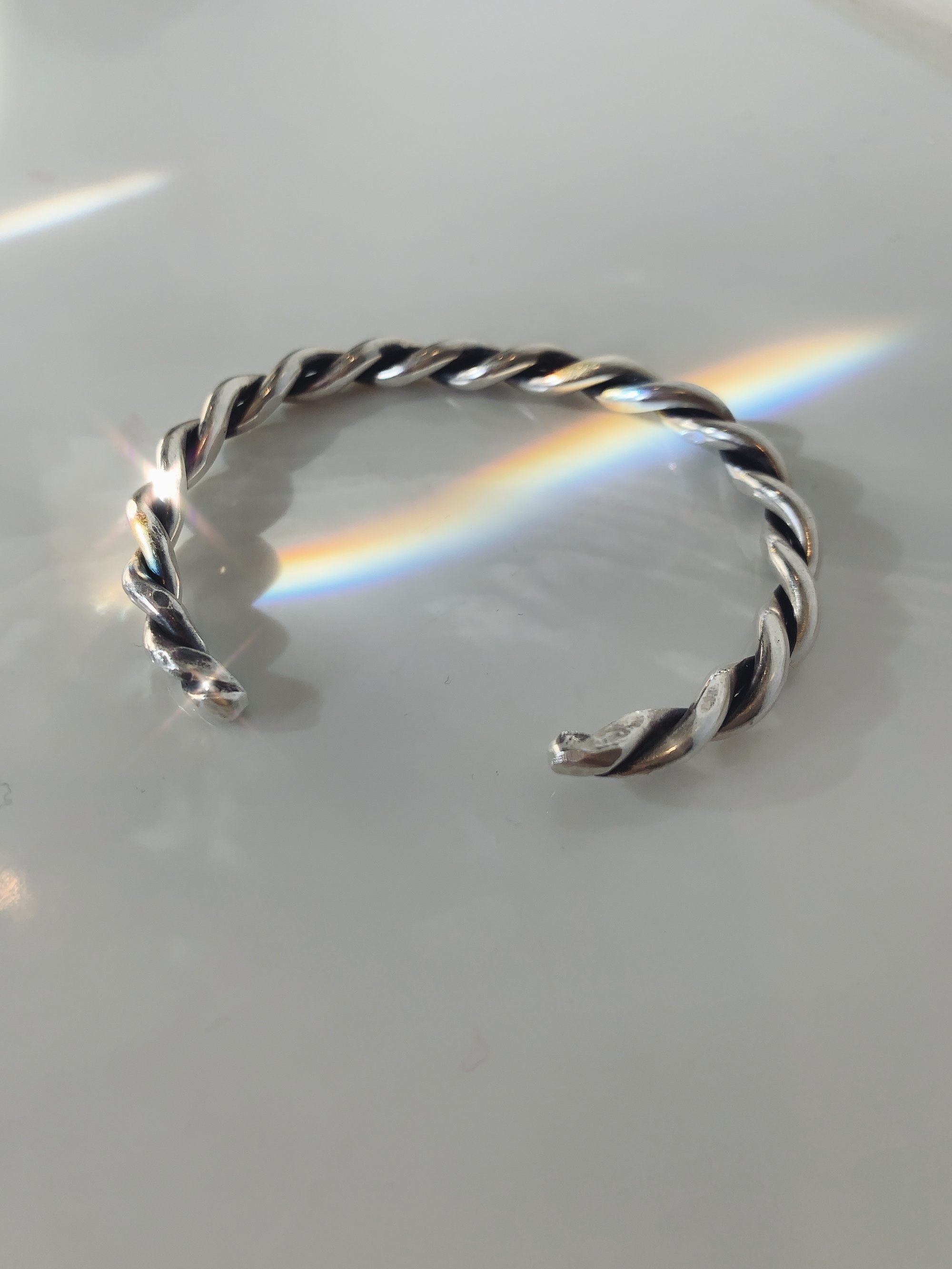Hand twisted sterling silver lasso cuff. This cuff is adjustable, but adjust gently!