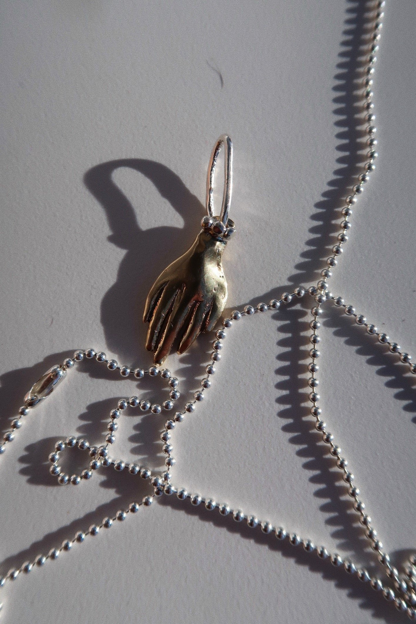 The Manus Tutelaris (guiding hand) pendant comes in solid sterling silver or yellow bronze, all styles with a sterling silver bail. Each piece is a little different from the next - some include a bracelet, some do not. If you have a preference, please specify in the check out notes, otherwise, dealers choice. :) Available with or without a 3mm gemstone set in a sterling silver or 14k gold bezel.