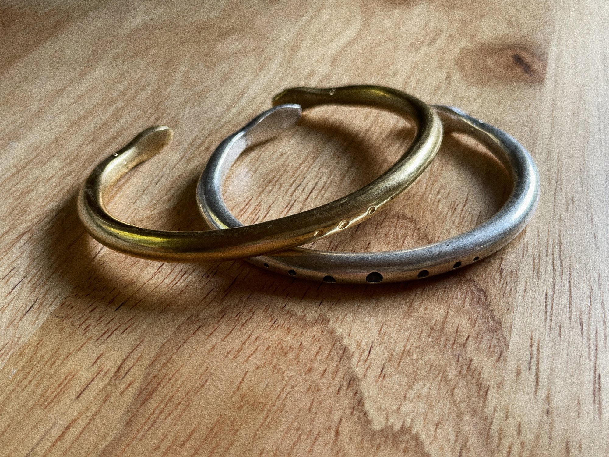 Your choice of solid sterling silver or brass. And this particular cuff can safely be adjusted by the wearer to give the perfect fit!