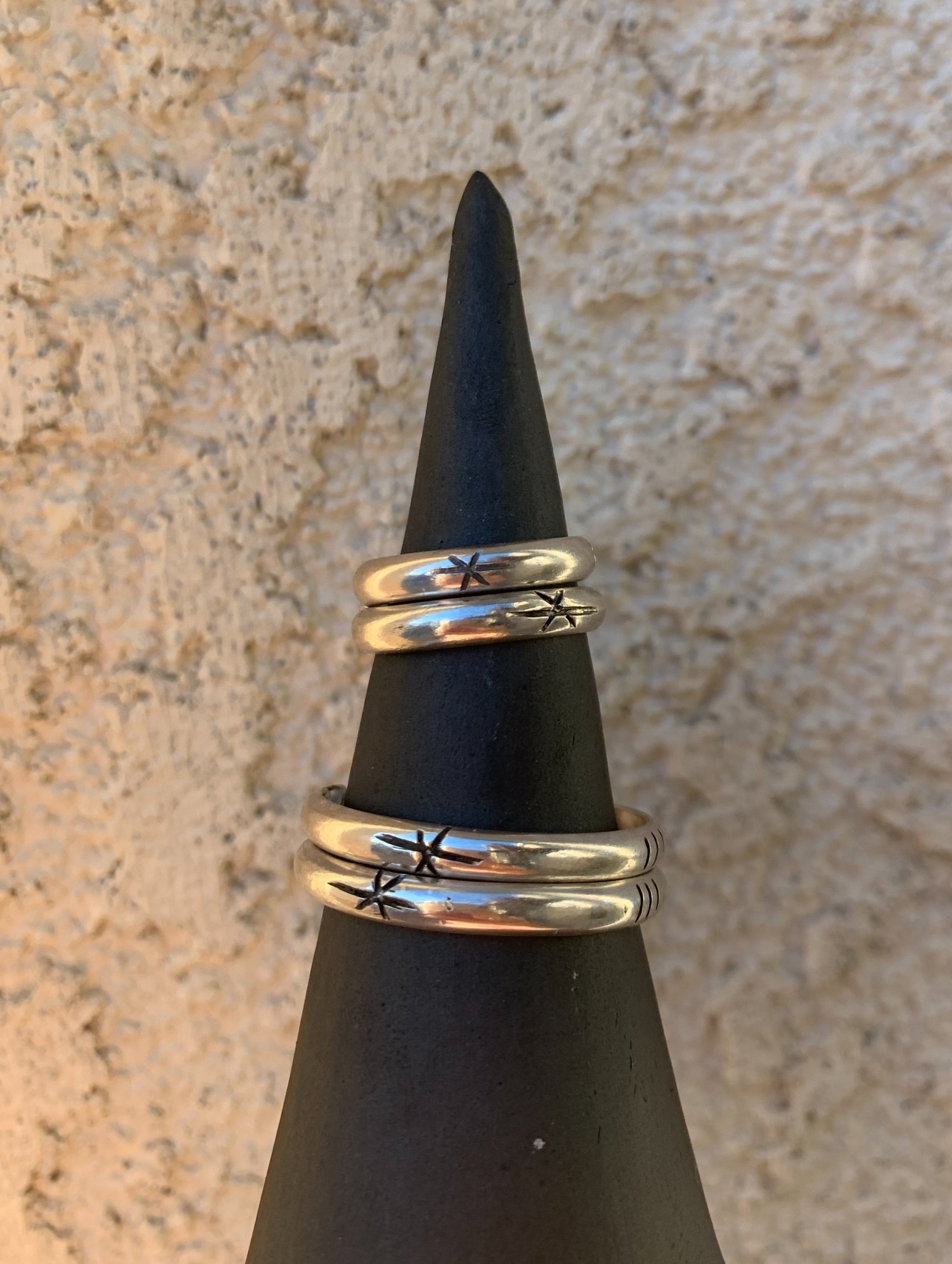 One of a kind, handmade sterling silver hoops with sterling silver posts and backings. Each pair hand marked, no two pairs the same.