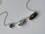 Left to right, turquoise, variscite, royston ribbon turquoise . All charms are attached to a sterling silver chain. Chain currently at 16" but can easily be worn at any length under 16" (also can change chain length upon request, please specify in checkout notes).