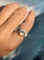 Rutilated Quartz in Sterling Silver with a beaded double band. Size 6.75.