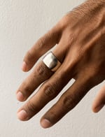 Custom fit solid sterling silver band. Can be made to fit any size finger. Specify size in check out notes and please keep in mind that bands of this width run small, so size up (i.e if you're a size 6 in a thin band, you'll want to order approx a 7 in a band of this width).