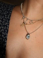 Paired with a sterling silver chain— your choice of a 4mm streamer chain or a 2mm ball chain. Default 18", specify in check out notes if you prefer a different length.