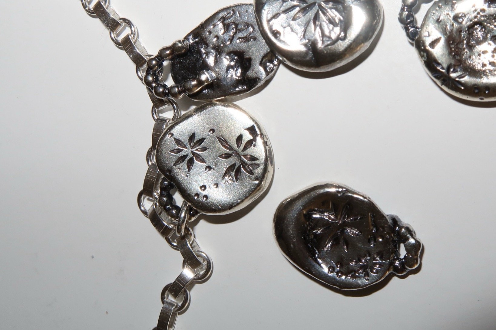 The starburst pentacle charms are made with recycled sterling silver, each charm unique. All engraved with starbursts.