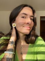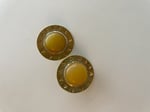 Lemon jade with a fine silver bezel on brass. As always, with sterling silver posts and backings.
