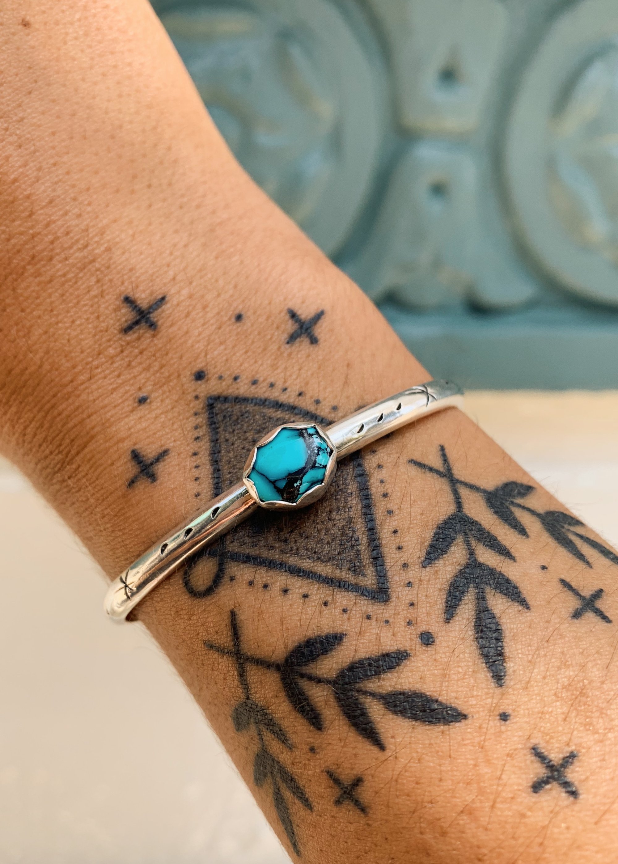 Sterling silver and turquoise cuffs, each with their own unique designs.
