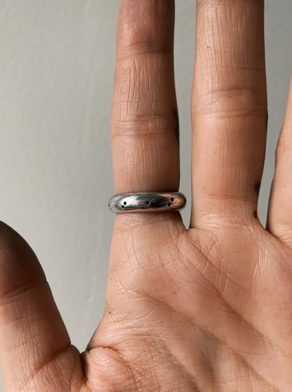 Beautiful piece of Variscite in a serrated bezel on silver band.